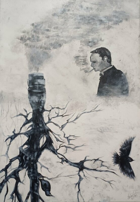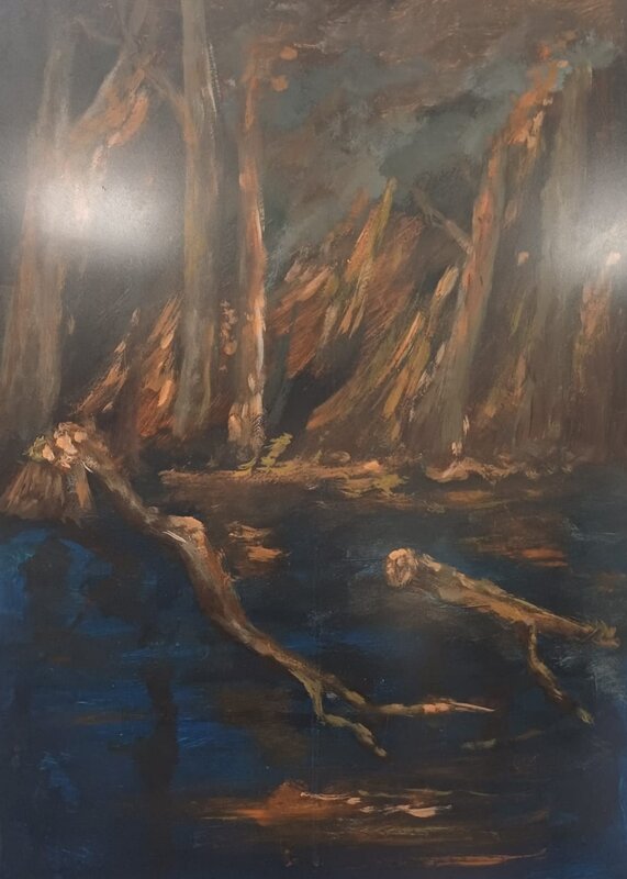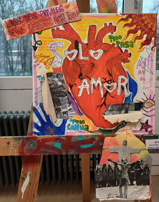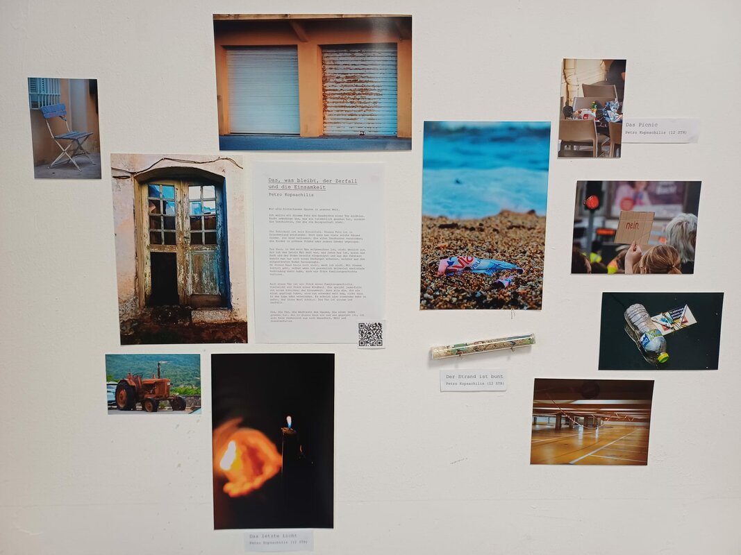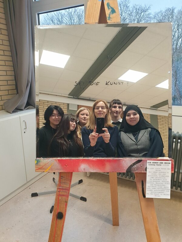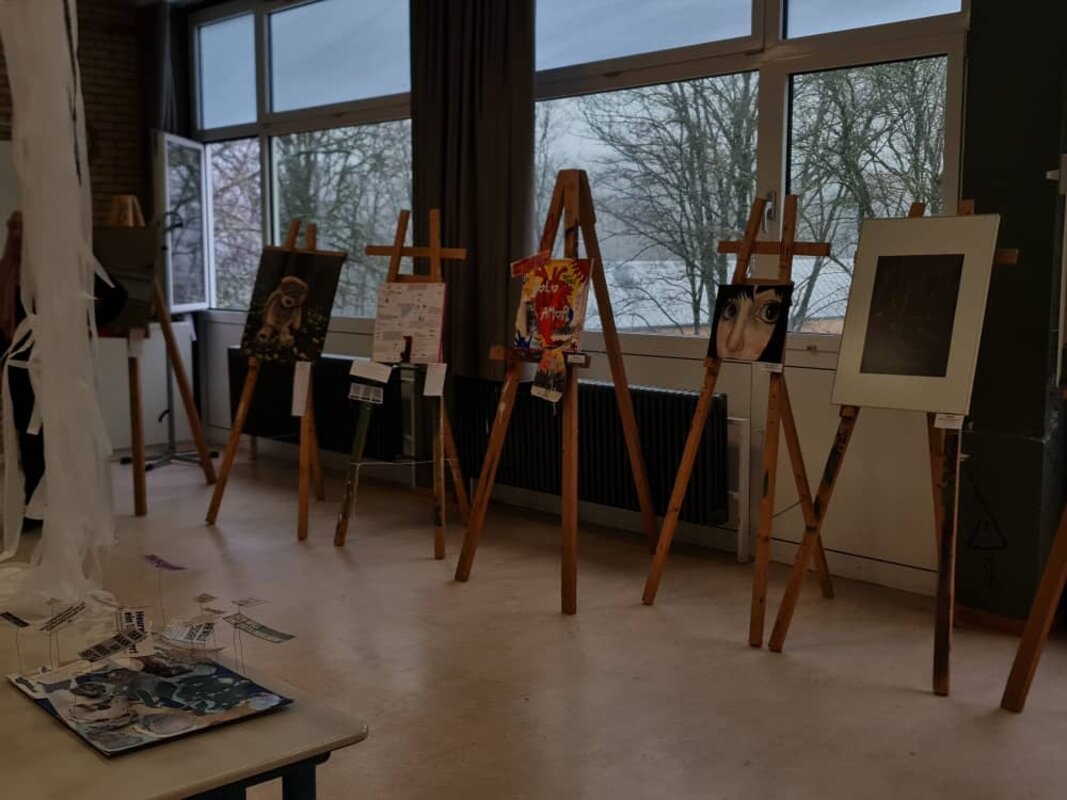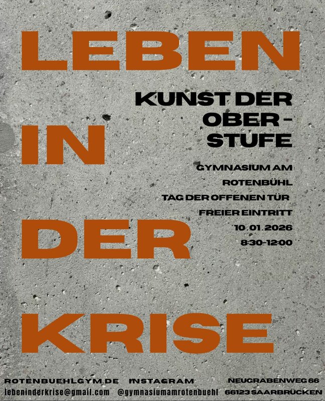 Die Ausstellung zum Thema "Leben in der Krise" setzt sich aus Werke von Schülerinnen und Schülern aus der Oberstufe des Gymnasiums am Rotenbühls zusammen, die sich mit den jetzigen Krisenzeiten in Bezug auf die Umwelt, Politik, Digitalisierung, Gesellschaft und das Individuum beschäftigen.