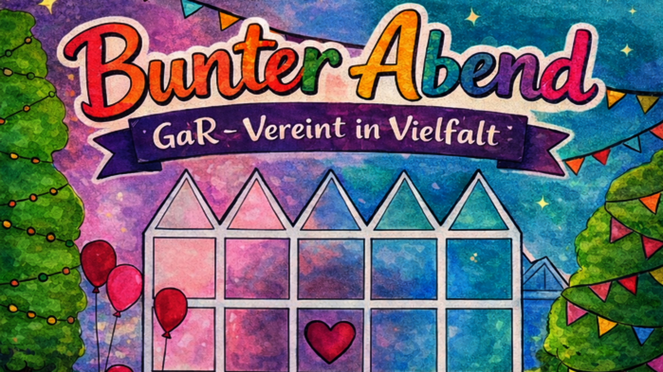 Unter dem Motto "GaR - Vereint in Vielfalt" findet am Freitag, 13.3.26 ab 17 Uhr unser Bunter Abend in der Aula statt.