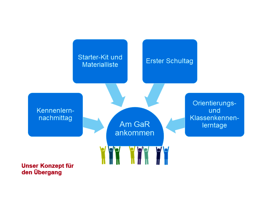 - Orientierungs- und Klassenkennenlerntage zu Beginn des Schuljahres zum Kennenlernen von Schule und Klassengemeinschaft